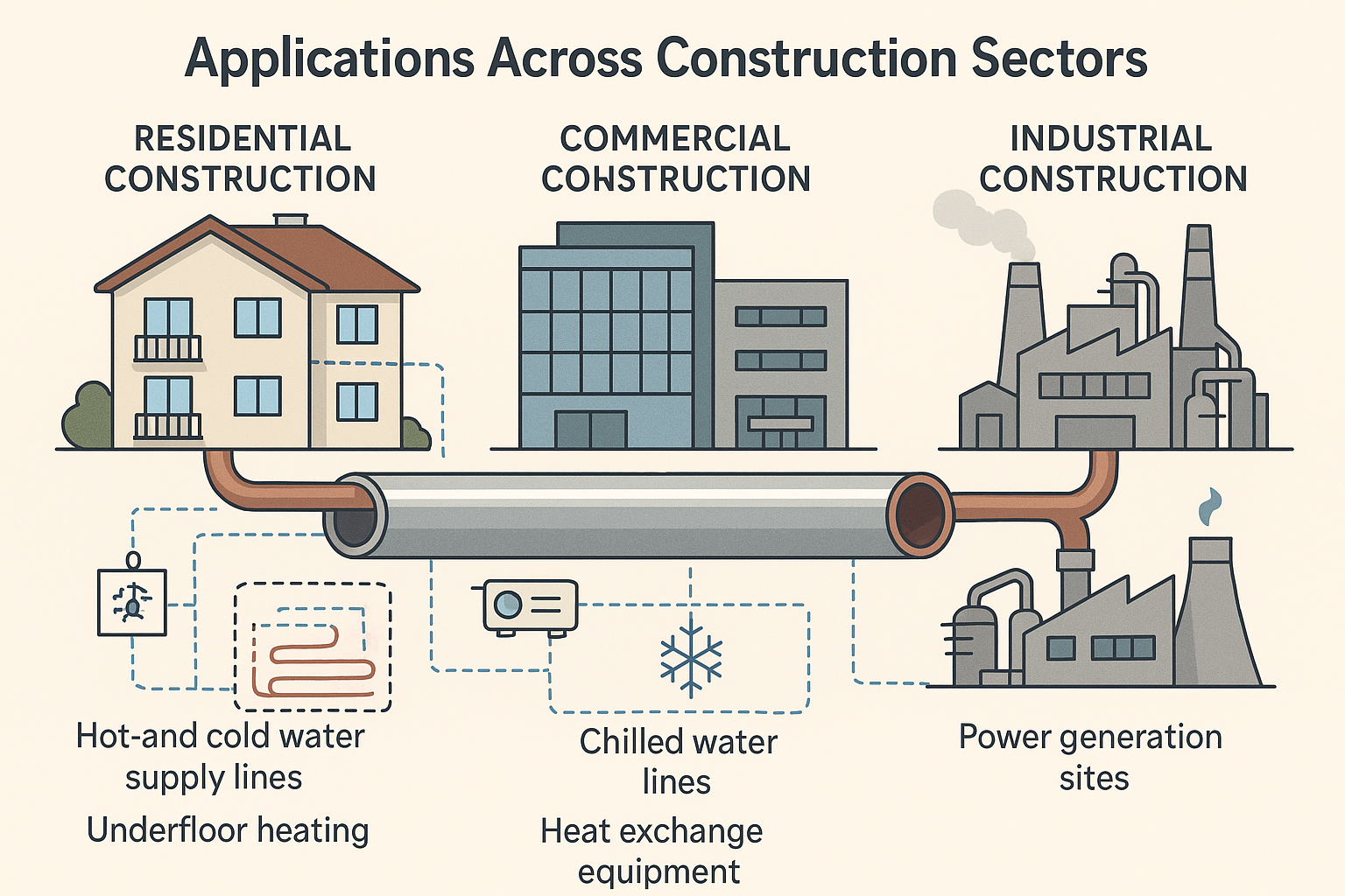 De veelzijdigheid van zilver copper tubes maakt ze geschikt voor een breed scala aan bouw toepassingen . In woningbouw , waar ze vaak in worden gebruikt toevoerleidingen voor warm en koud water , verwarmingssystemen , en vloerverwarmingsnetwerken . Hun duurzaamheid helpt het risico op lekken en corrosiegerelateerde storingen te verminderen, wat vooral belangrijk is bij woongebouwen met meerdere eenheden .