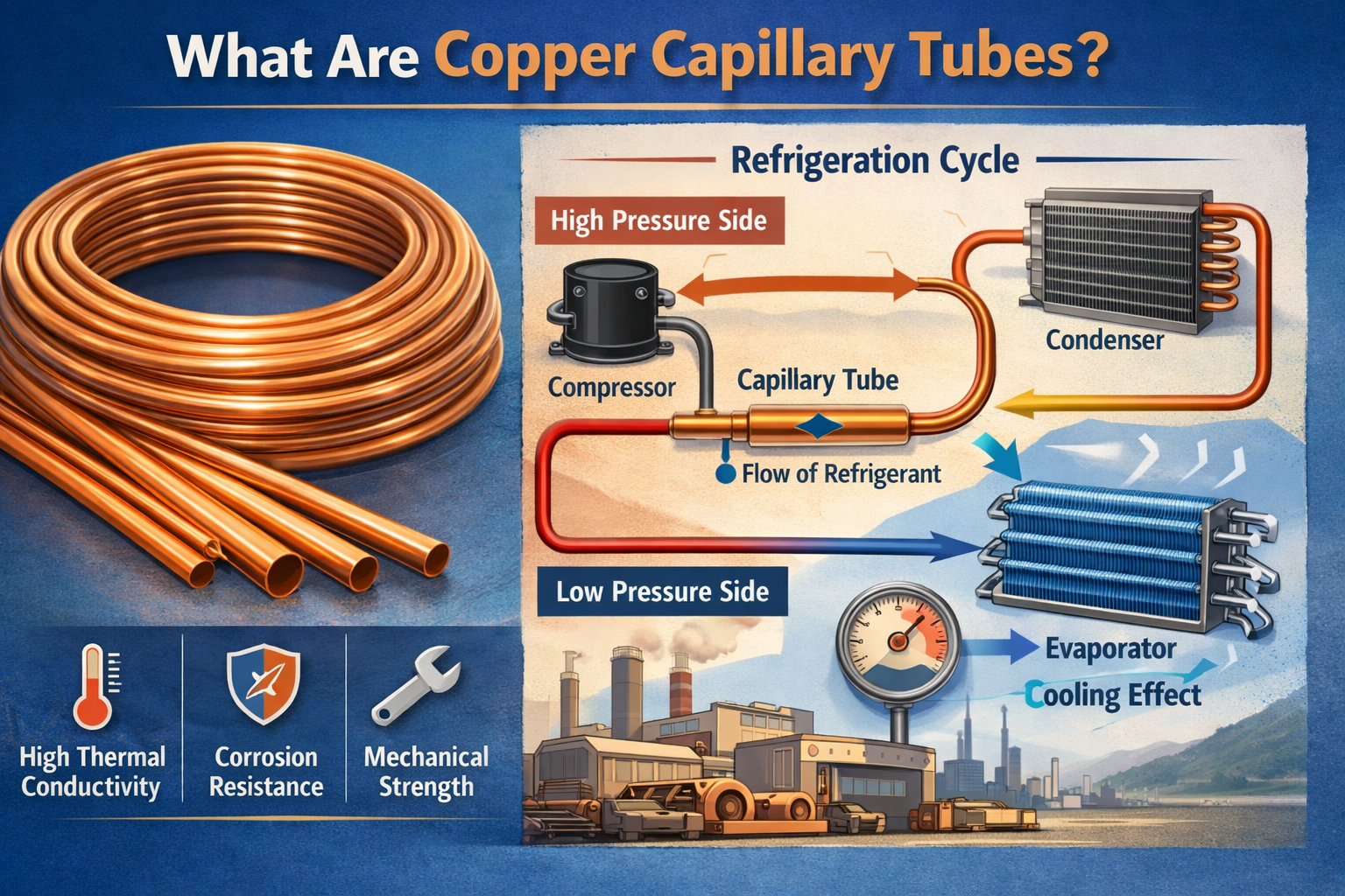 Koelsystemen zijn essentieel in het moderne leven, van het bewaren van voedsel en medicijnen tot het behouden van het comfoft van onze huizen en werkplekken. Een van de belangrijkste componenten die de efficiënte werking van deze systemen gareneren, is de capillaire buis . Van de verschillende materialen die voor capillaire buisjes worden gebruikt, koper is vanwege zijn unieke eigenschappen een ideale keuze gebleken.