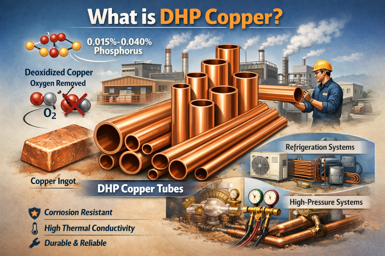 DHP-koper is een superieure, gedeoxideerde koper legering die een kleine hoeveelheid bevat fosfor , doorgaans tussen 0,015% en 0,040%. Het belangrijkste kenmerk van deze koper is dat het wordt aanbevolen om zuurstvan te verwijderen, een proces dat de weersten tegen correctieverbeteringen en zorgt voor betere prestaties in hogedruksystemen. Het fosforgehalte verbetert de eigenschappen nog verder, waardoor het ideaal is voor gebruik in toepassingen waar duurzaamheid, warmtegeleiding en sterkte van cruciaal belang zijn.